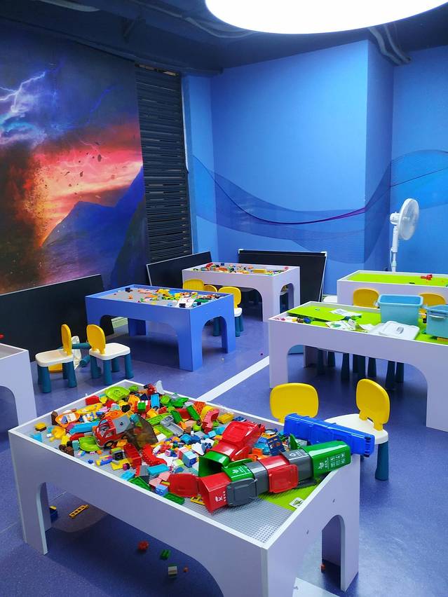 除了VR设备之外,馆里还有几个太空人的模型,真的特别酷,还有给小朋友玩的乐高益智天地,积木玩不停,这是一个亲子游戏的好地方。