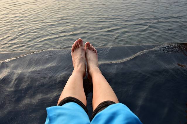 没想到泡脚时也能看夕阳