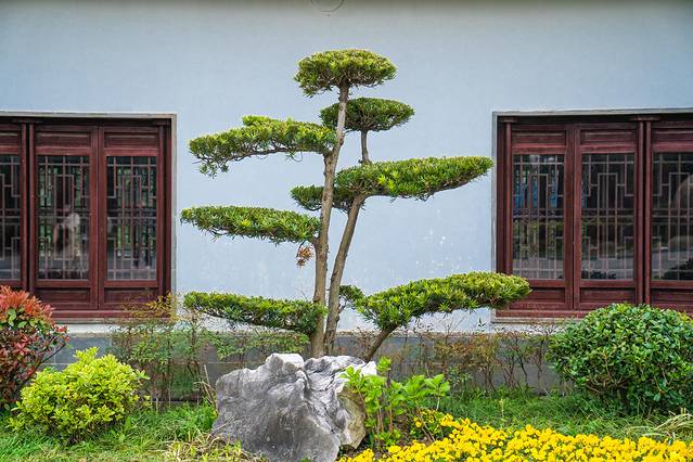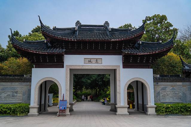 走过郁金香画展的区域,往里面走就有许多亭台、院子。和郁金香画展风格完全不同,这里更安静、庄重一些了。从这里走进去,可以看见园内的张謇墓、张謇纪念馆、鱼乐廊、映山楼、松鹤轩、花溪等游览景点。