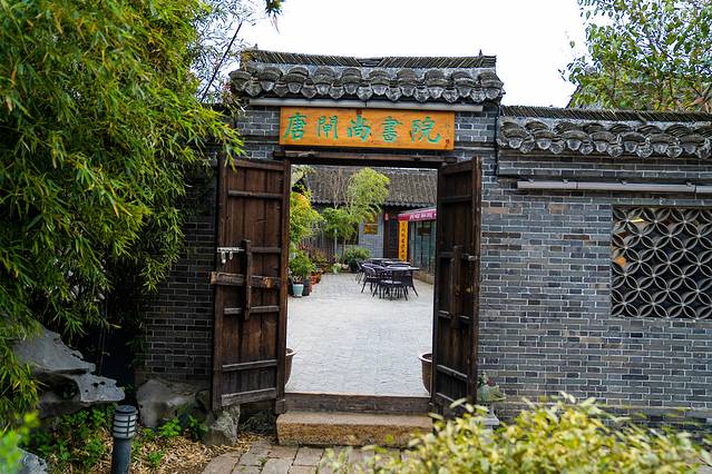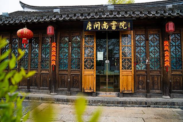 继续沿着河往前走,可以来到唐闸尚书院,唐闸尚书院是一个集茶寮、书籍于一体的休闲之处,走累了可以在这里看看书、喝喝茶,门口的小河小桥风景也非常的不错。