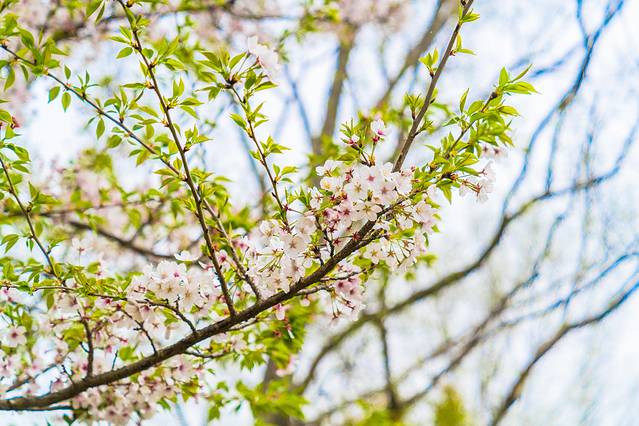 景区面积很大,可以逛的地方很多,从中间的那条路走过,远处可以看见狼山顶上的塔,狼山不高,整个江苏的山都不会很高,所以狼山虽然不高,但在江苏,也是非常有特点的了。近处的樱花盛开,也许因为雨后的原因,有些花儿已经洒落在地上。