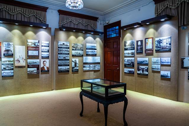 走进展馆内,左边第一个室内展示的是一些照片,这里也有张謇的一些事迹。讲述着南通历史博物苑的发展史。