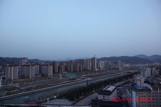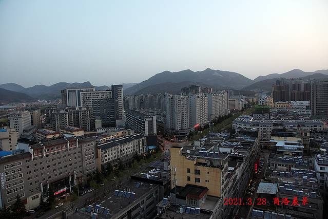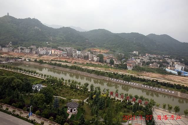 下午两点多到酒店,坐在窗边休息品茶,欣赏着窗外商山洛水的美景。