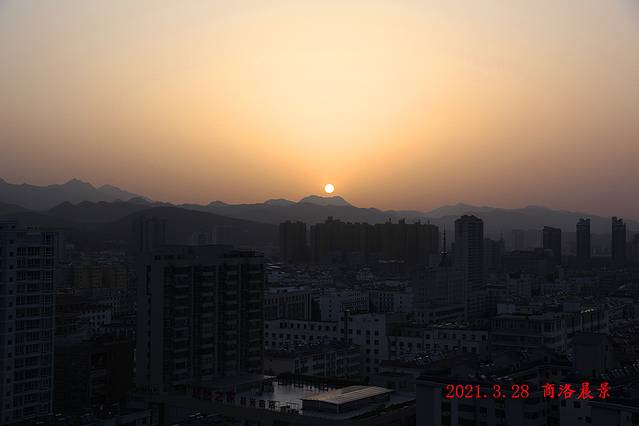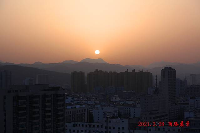 28日清晨六点多,我和父母到酒店顶层俯 望城 市晨景、观看日出~