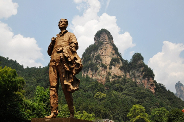 为什么画家吴冠中的铜像会被建在这里?这其中还有一段小小的故事。1979年末,吴冠中为了创作一副重要的巨幅油画,到各地搜寻奇峰打草稿,就来到了湘西写生。在老乡的推荐下,吴冠中来到了当时还是大庸县北一个林场的张家界,一到那里,吴冠中就被张家界举世无双的美彻底震撼了,在接下来的三天中,连续画了五幅水墨风景,一幅宽两米、高一米的《张家界》尤其惊艳画坛。