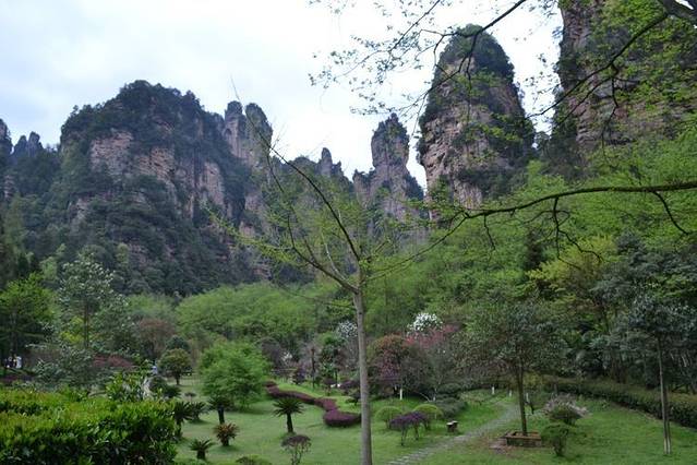 早上醒来,终于精神焕发,吃过早饭,我们坐车到了森林公园门口。到达门口,只感觉自己一下子就被宏伟的大山包围,除了要低头看路,还要仰头看这高高的山。