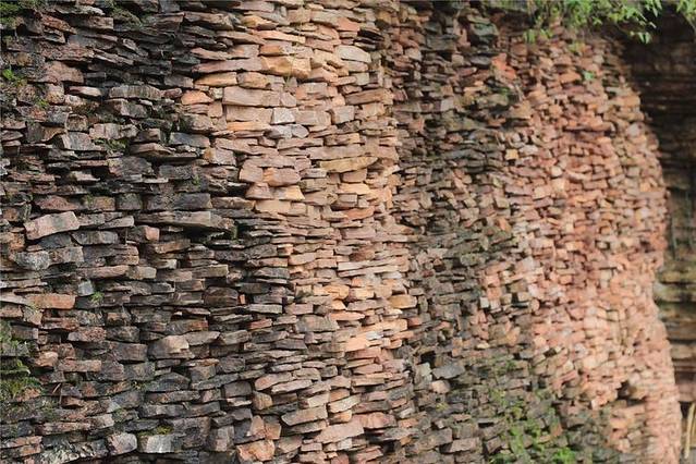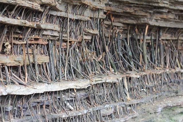由很多小树枝支撑着,也许是为了防止薄薄的石片坍塌掉下来。