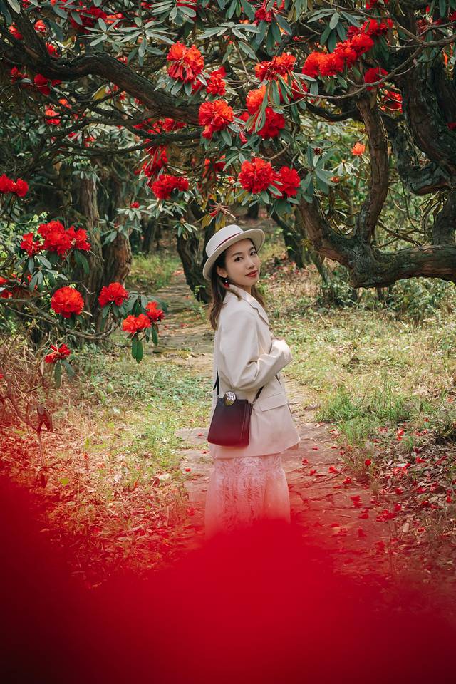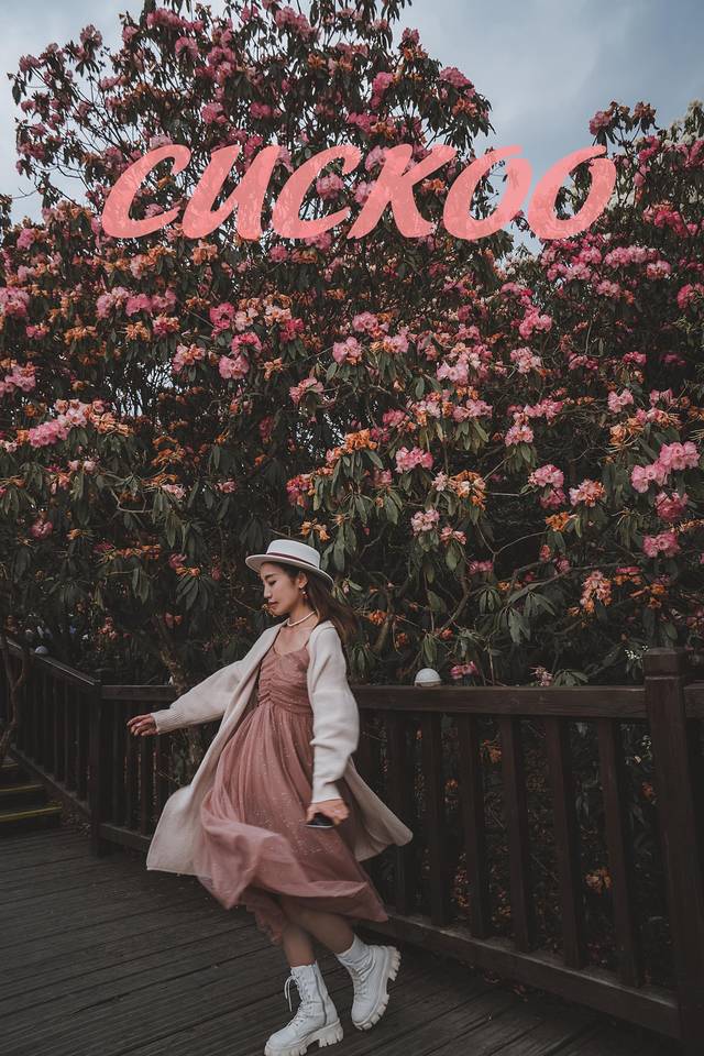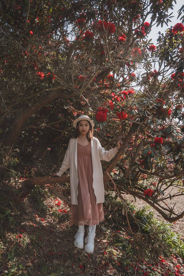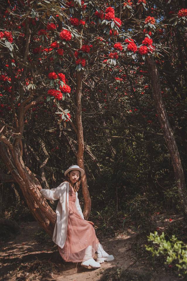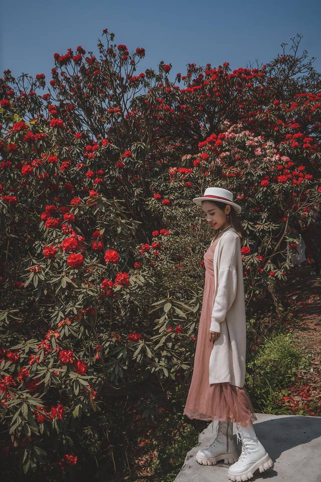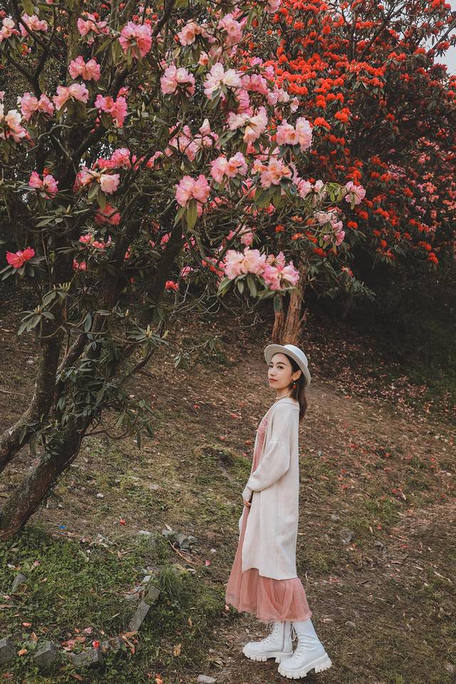 1. 金坡和普底景区几乎全是红的、粉的、白的杜鹃花,在衣服穿搭上可以选择同色系或者撞色系,比如同色系的白色、粉色比较清淡的颜色,撞色系的天蓝色、姜黄色等比较跳跃的颜色。