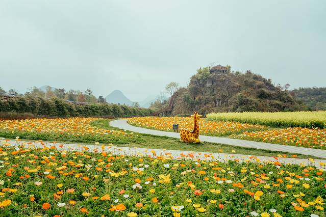 除了赏花,这里也有一些人造小景点可以打卡拍照,在景区深处,还有一个小型玻璃栈道和花海迷宫,赏花同时也能玩耍娱乐。