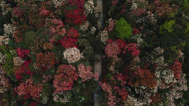 毕节百里杜鹃是世界上面积最大、种类最多以及保存最完整的原始杜鹃林,整个杜鹃林绵延了五十多公里,各种颜色的杜鹃花汇集成了地球上最美彩带,浪漫无比,而更浪漫的是杜鹃花的花语:永远属于你。