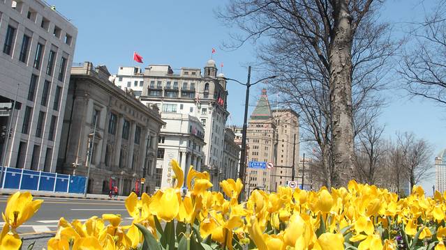 花丛中的外滩世界建筑群