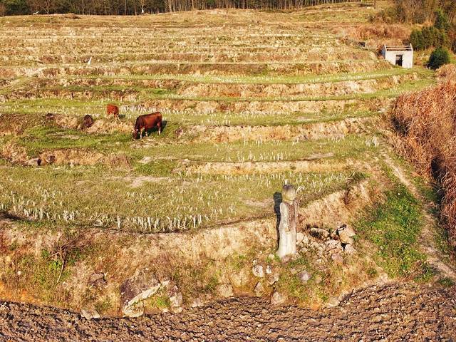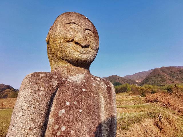 驱车行经三节村时已是午后,几经询问才终于见到石像本尊。远远望去,石像孤零零地矗立在山头的一片梯田中,似乎在独自守护着这片土地。
