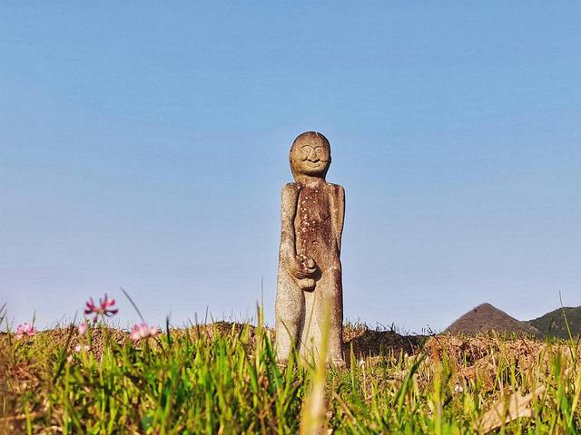传说当年农夫们在田里干活觉得无聊,想要逗逗村里的姑娘,于是就故意把杂物饭盒之类的挂在石像的下体部位,然后叫姑娘们帮忙去拿,但姑娘们看到之后都羞愧难当,不敢用手去碰,干脆就用石头把石像的下体敲断了。