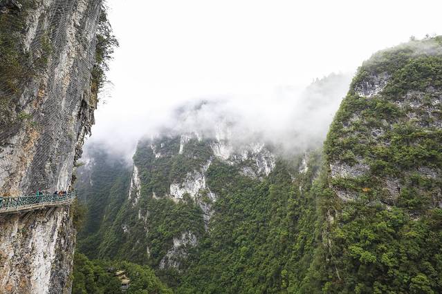 游客服务中心——检票长廊——墨嘎寨入口——云罡栈道——罡步天梯——步云台——阿打铺子集散中心——千寻瀑——浣云桥——兰索桥——桃花渡——一线天——五尺门——望月桥——黑龙渊——滚龙坝码头——岔溪口观景台——傩愿洞——逍亭——杜宇楼