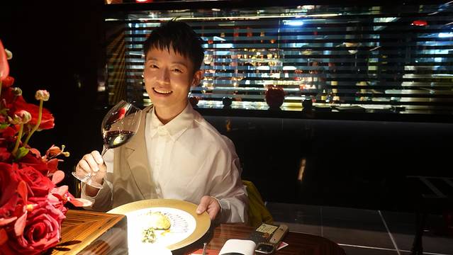 就餐过程中,品尝了勃艮第宝利的霞多丽 (Pouilly Fuisse),科奇亚的黑皮诺(Givry 1er Cru),和波尔多小华轩的长相思(Chateau Petit Vedrines),末了,一份玫瑰花造型的巧克力甜点,居然是用日本的清酒浸泡,再加上餐前的香槟,真是喝美了的一晚。