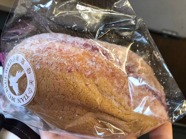 临坐车前买的一堆吃的,全是面包,真怕自己饿死