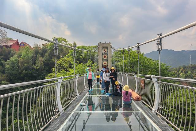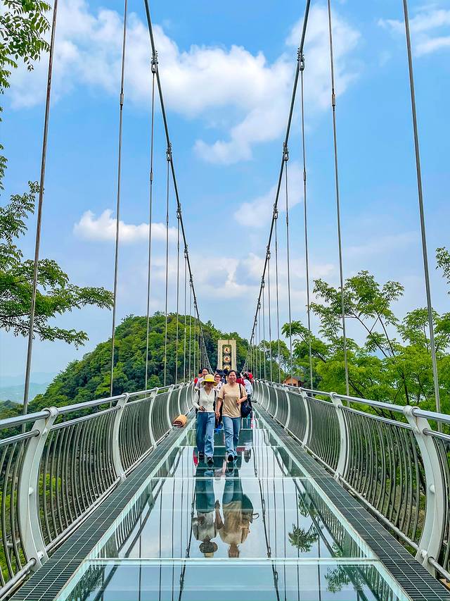 景区内可玩的项目非常多,比如飞龙索道、玻璃桥、旱滑、恐龙谷、双龙喊泉等,从景区大门进入需要乘坐一段缆车到达半山腰,再走一小段即可到达玻璃桥。