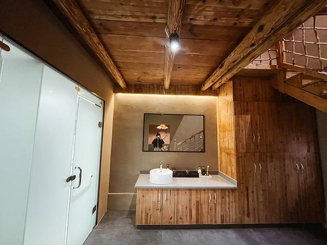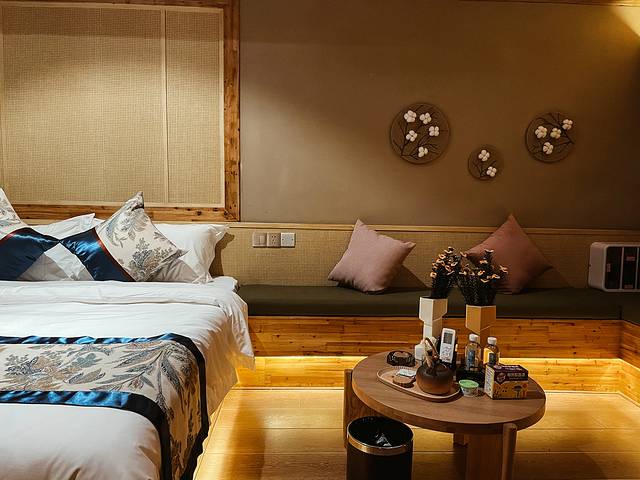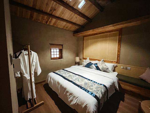 我们入住的是小镇内的研学精舍民宿,它是由客家土屋改造,以攀岩风格为主题的研学宿舍。进入客房需要经过一个小小的花园,里面种植了养眼的花草,推开民宿的房门,仿佛闯入了客家人家。
