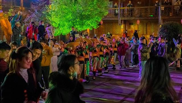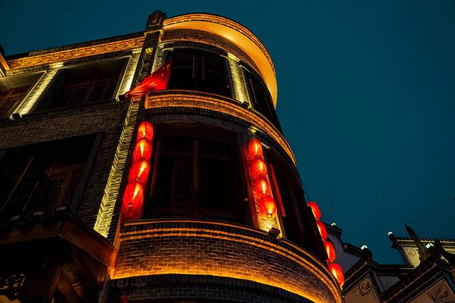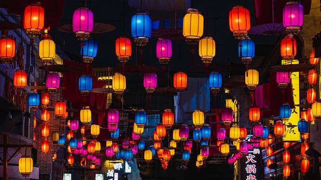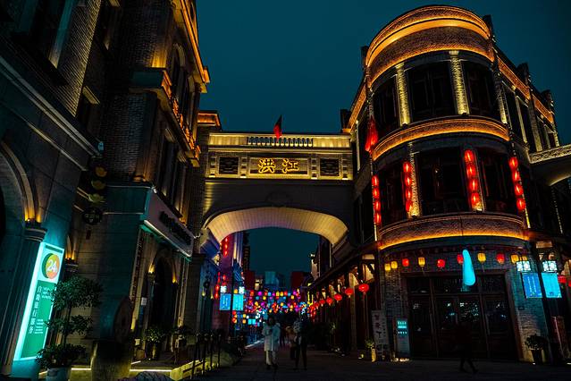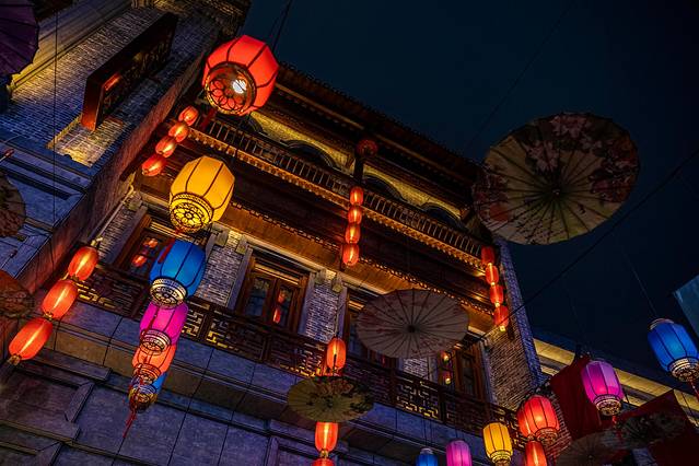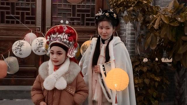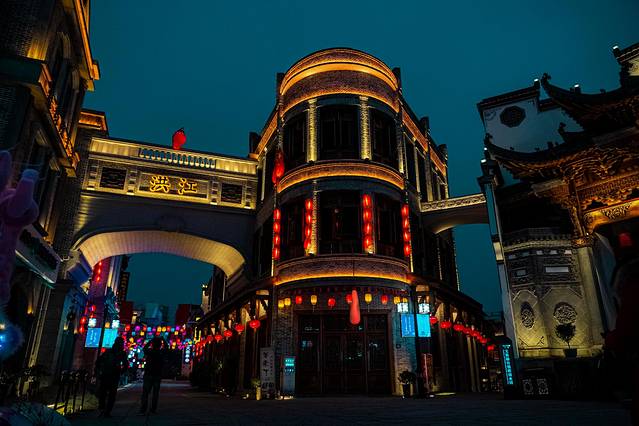 当夜晚降临,有美食商铺的叫卖声,有各种精美挂件小摊,还有穿着古装的小姐姐和小女孩卖灯笼,望你一眼我猜你心都会融化,精彩的节目表演让原本寂静的夜晚有了活力。