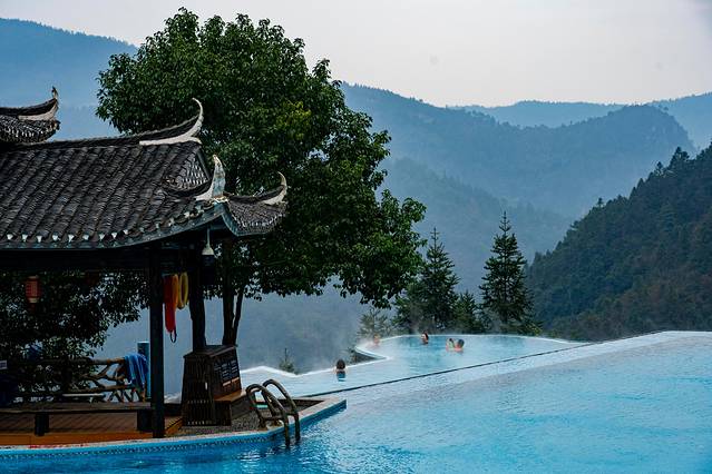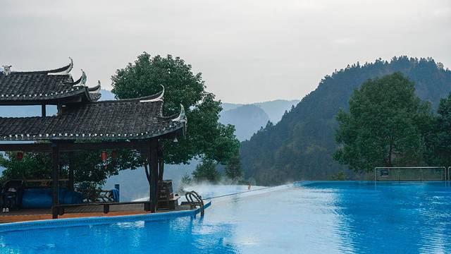走进瑶寨就去找瑶池,瑶池是无边的,他在山腰上,眼前就是连绵的山脉,山高眼阔饱览群山,一层层雾气飘起宛如仙境。温度刚好,泡进温泉扫去路途的疲惫。
