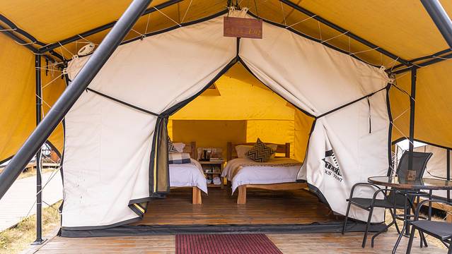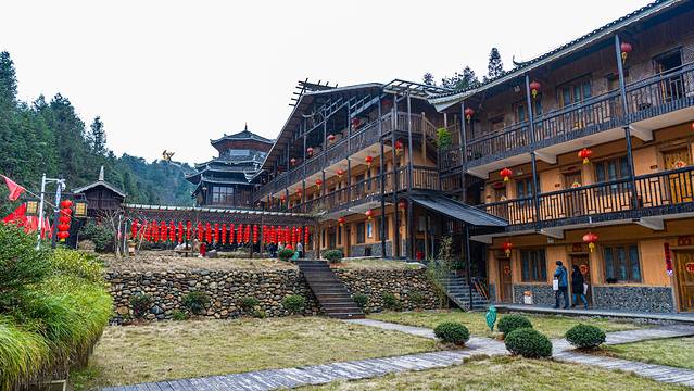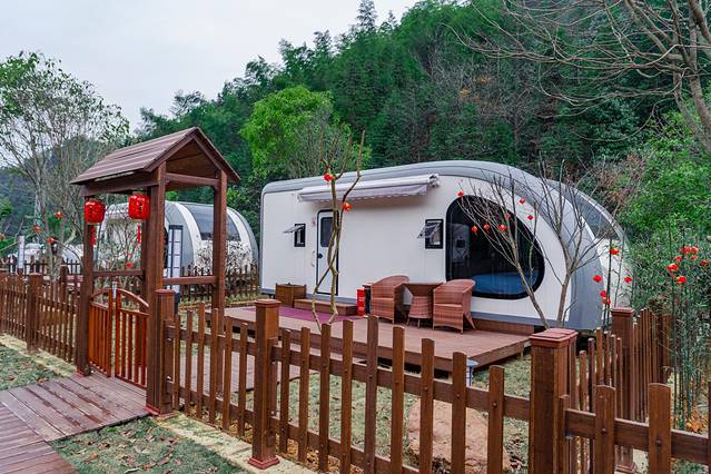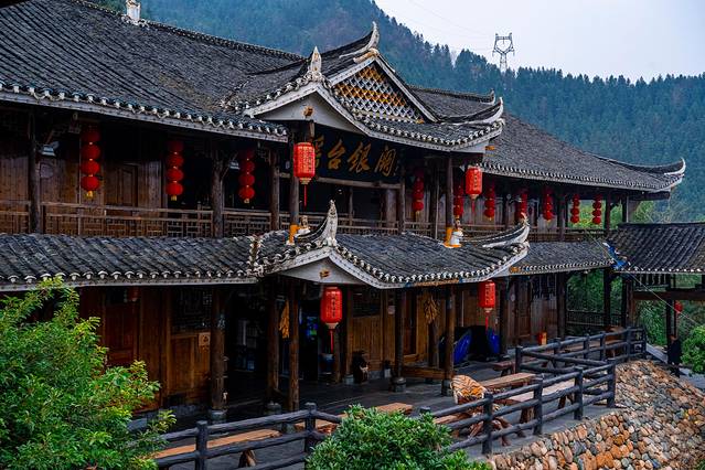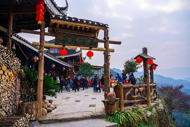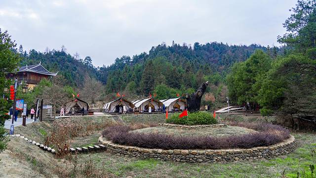 在蒲安冲岭的千里古寨,这里很是幽静,别有特色瑶族建筑。木屋、房车、帐篷与森林相交融,不同季节可以选择不同的住所。清晨山间鸟鸣,清新的空气无比惬意。