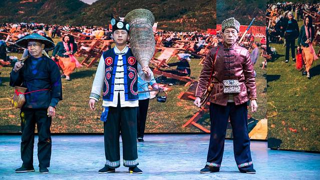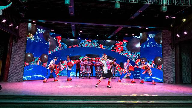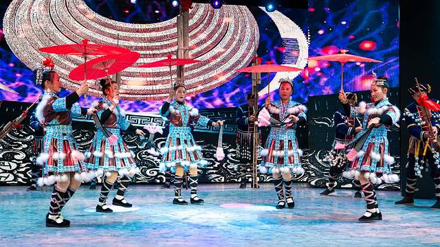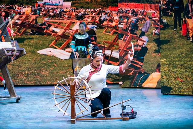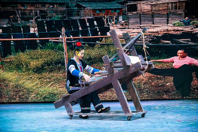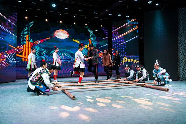 来侗寨一定要去表演,有展示他们日常生活比如织布、农作,还有当地特色歌舞,侗族的民间舞蹈有芦笙舞、哆耶舞、春牛舞、花扁担舞等,还有跳竹竿,台下观众也可上去体验,最后侗族姑娘展示了一波极速跳竹竿,看得那是一个过瘾。
