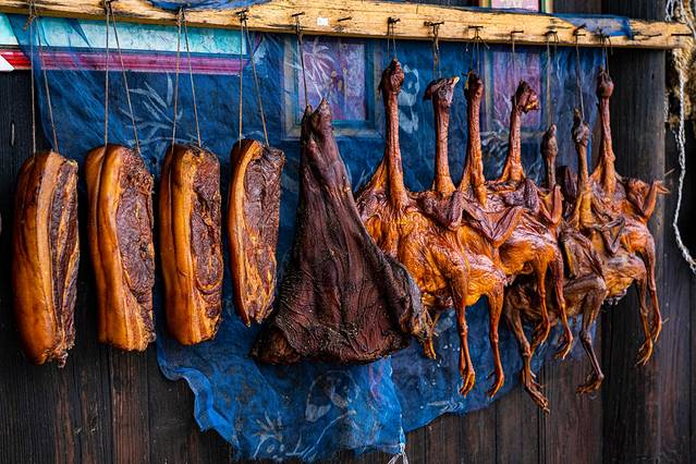 这里位于深山,交通不便,之前的村民在山中自给自足,家家户户都是种田养猪,这里的猪都是自然生态环境下养殖吃的都是萝卜白菜,肉质是十分的好,所以政府推出“云养猪”的活动,就是游客可以认养当地的土猪,当土猪长大村民会把肉制作成腊肉邮寄到家。