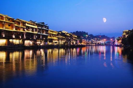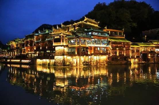 沱江—古城石板老街—沱江吊脚楼—凤凰夜景
