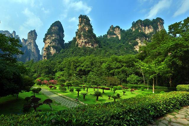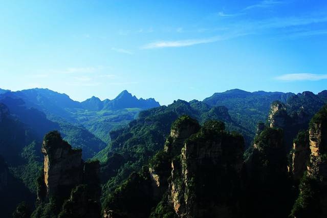 雅安居特色客栈--环保车--天子山--天女散花--御笔峰--步行下山--十里画廊--环保车--武陵源门票站--直接回张家界市内。