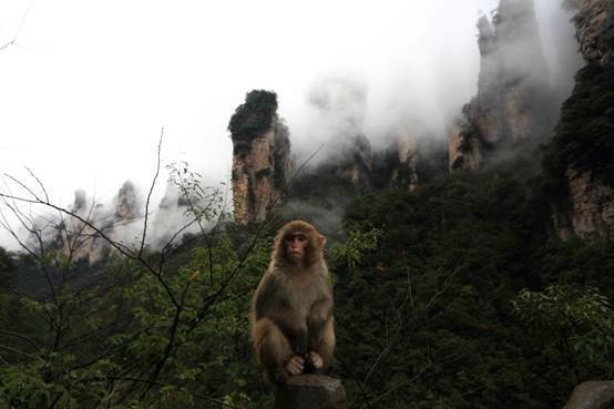以前从来没觉得猴子有多可怕,但是自从来到武陵源,发现这里的猴子简直“无法无天”,随意抢你的早餐不说,竟然还乱爬乱跑,往我们身上蹭(吓死宝宝了~~)一点都不惧怕游人!大家一定要小心它们呀!手提袋什么的最好装在包包里,不然真的会被抢走的,一天的干粮说没就没了!