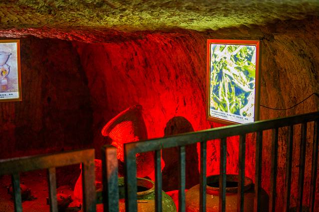 整个墓室里面就像迷宫一样,高度不是很高,比较容易碰头,大概1米8左右。石头上的凿痕,让我想起了浙江的龙游石窟。地宫里面完全是模拟了帝王生活的场景,有各种石头开凿出来的房间,“保安室”、“仓库”、“停车场”等一应俱全。当然里面还有一些复原的古董和珍品,都被放在了徐州博物馆里。