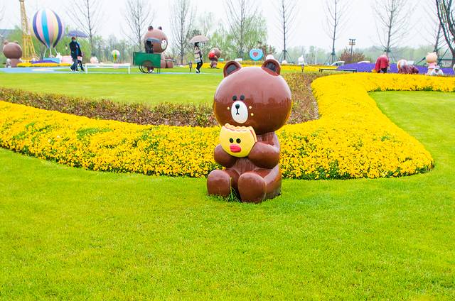 景区绿意盎然,不仅有鲜花、草坪、树林,还有又萌又可爱的卡通雕像,游客们纷纷合影留念。还可以到码头乘坐画舫游船,前往鸟岛及潘安水镇。鸟岛上主要是一些小动物,比如羊驼、鹦鹉等。潘安水镇,比较热闹。清一色的古建筑,高挂灯笼、青砖灰瓦、吊脚飞檐。街道上,还可以观赏民俗表演、品尝民间小吃等。