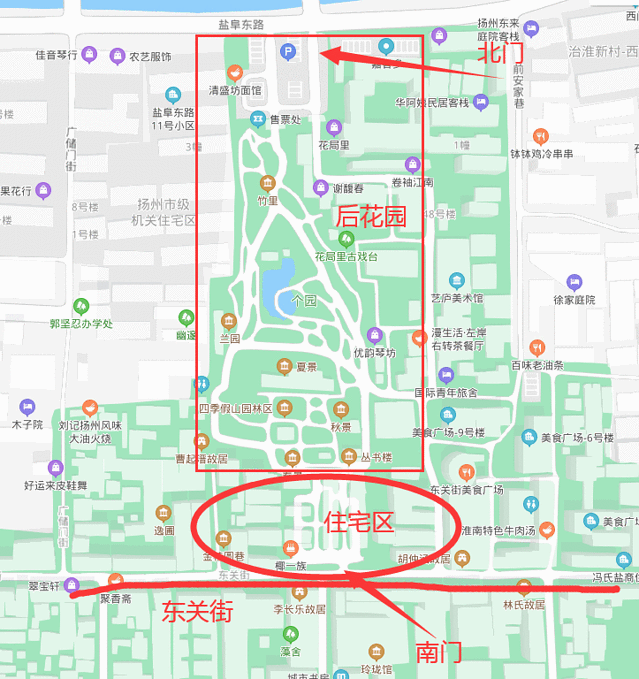 北门实际是从园子的后花园后门入,南门是宅子的正门,南门出来就是东关街了