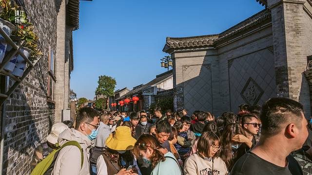 观光客必到, 扬州 城最具有代表性的一条历史老街,街上有 扬州 经典特色小吃,依然保持着明清时期风格的街道,和其他城市的仿古街一样,小吃+旅游纪念品+人+人头。