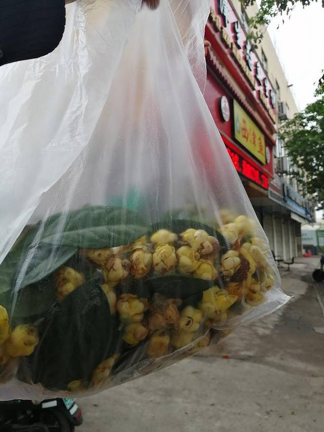 我捡的几朵刚从树上掉下来的木棉花,本来想晒干再煲汤的,这样功效更好,但是连续几天都是阴天,所以我就拿了2朵洗干净煮粥吃。