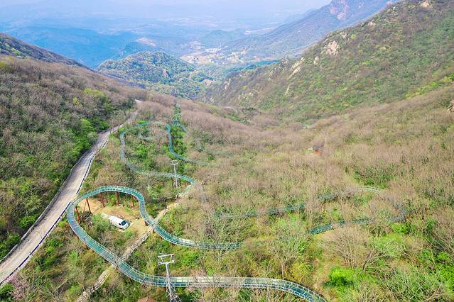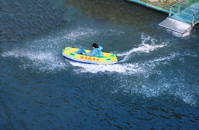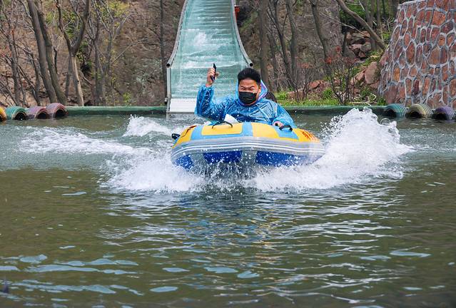 如果你是豪放派,云端水滑一定不要错过。云端水滑是一条全长约3000米总落差近360米的全透明玻璃滑道。玻璃滑道蜿蜒盘旋在山林之中,看着就觉得很刺激!这么好玩儿的项目我岂能错过呢?穿好雨衣,坐上橡皮艇,开滑!