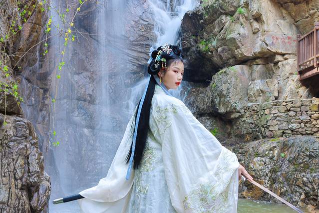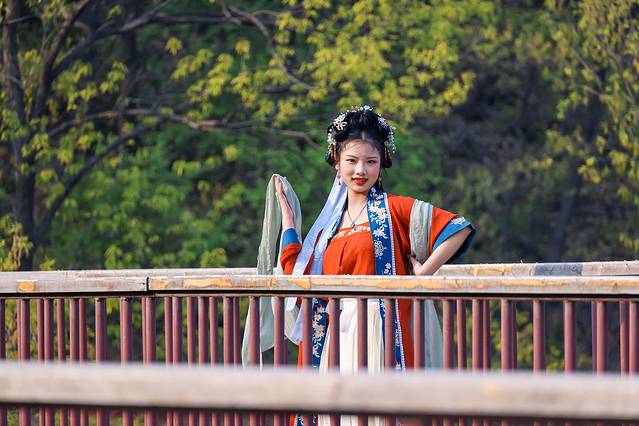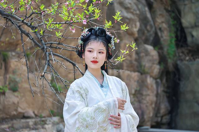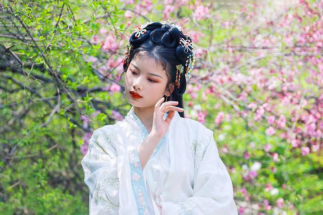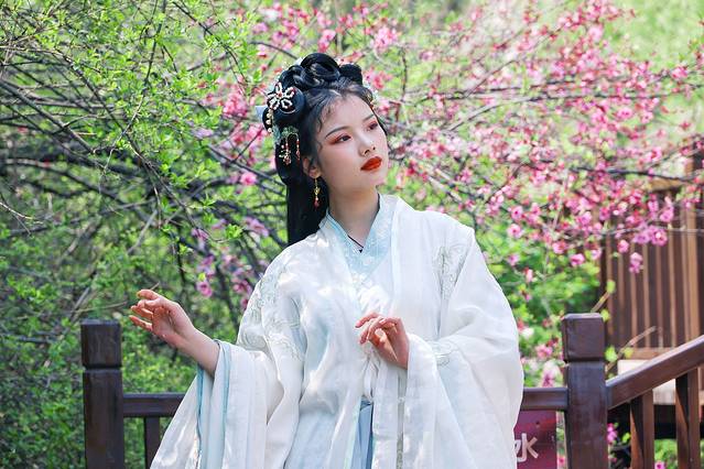 山中春晚,四月份的摘星楼景区春意正浓,峡谷里的桃花开得热烈喜人。一朵朵粉粉嫩嫩的桃花挂在枝头,像天边糖果色的晚霞,像少女绯红的脸颊。桃花树下,汉服小姐姐驻足凝望,我不知道究竟是花更美还是人更娇,可以确定的是,峡谷因她们而更俏。