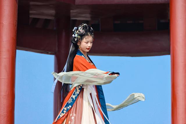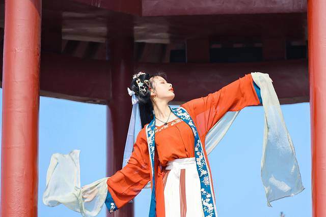 小姐姐一袭红裳在摘星楼下翩然起舞,那流转的眼波、曼妙的舞姿和飘然的裙袂无不让人有种一眼万年的感觉。看得出神,有那么一刹那我居然有种不知今夕是何年的感觉。