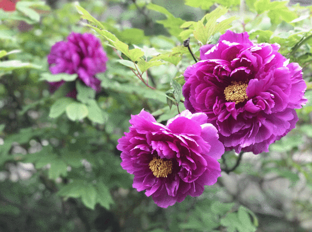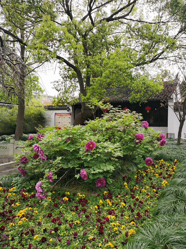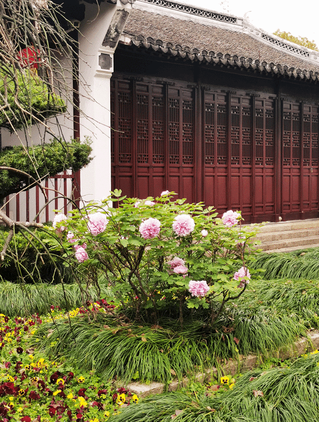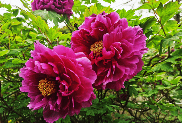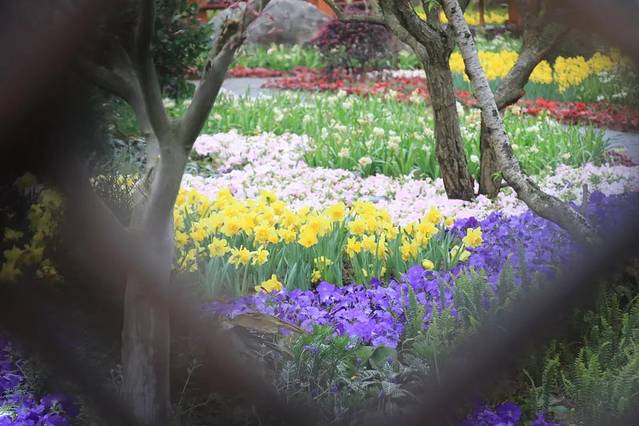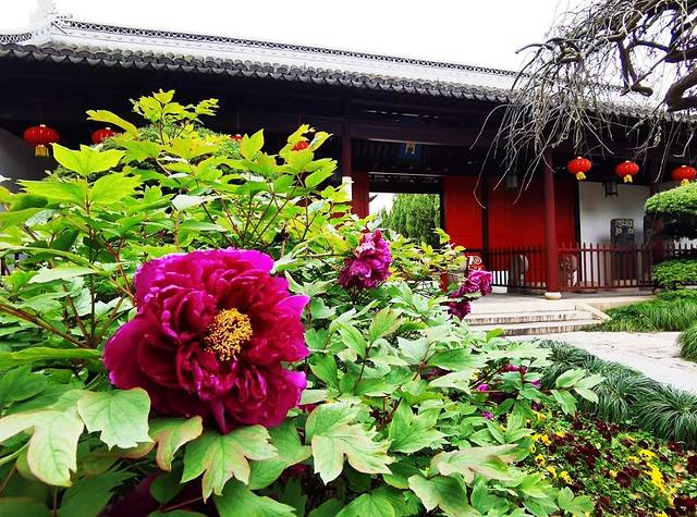 走进牡丹园,进门穿过一条悠长的小路,印入眼帘的便是成片鲜艳绚丽,姿态娇媚的牡丹。
