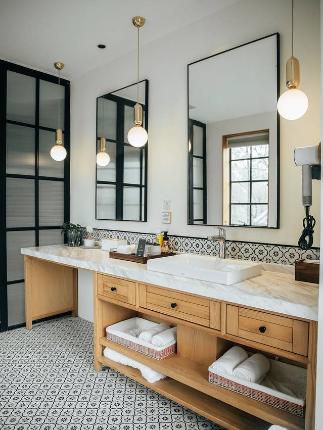 明亮而宽敞的洗漱间,这个太友好了,一家三口同时用也不会挤