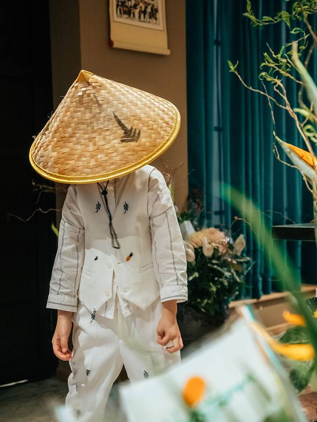 咖啡馆定期有不同的课程,这次是插花,然而好动的河豚宝对此兴致不高,倒是对这越南帽情有独钟
