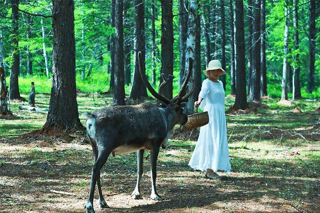 循着铃声走进森林,一群驯鹿现身。