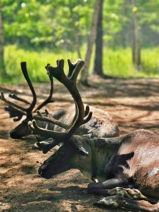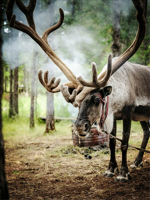 十元钱从工作人员那里买来一篮苔藓和驯鹿互动,只有当手心感觉到它们鼻孔呼出的热气时,才真实的感受到自己遇见了童话里的精灵。