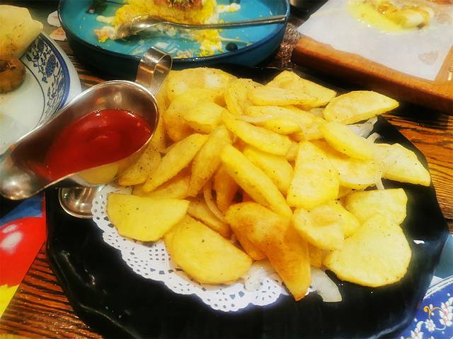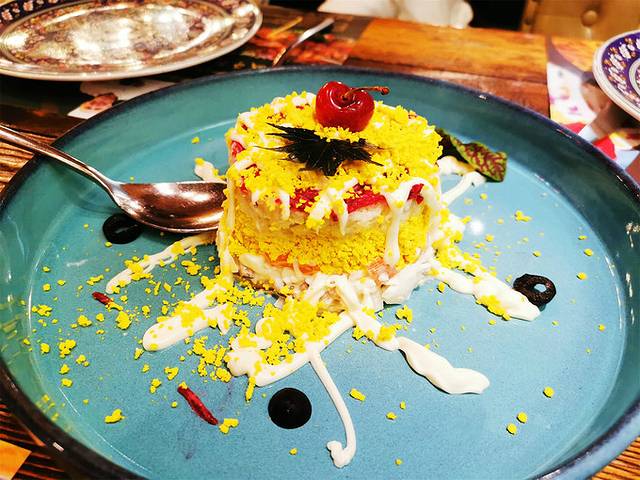 满洲里卢布里西餐。满洲里俄餐排名第一的卢布里,一定要去吃,俄式风味真的超赞。据说疫情之前每天都会排队,我们去的时候没什么客人,也没有俄罗斯服务生和演出。不过他家的招牌奶酪包真的太太太好吃了,一口下去还有拉丝,奶香四溢,第二天都还在回味。皇后沙拉、土豆片也很好吃,餐厅主打各种碳烤食物,份量超大一串,吃完基本扶着墙出来。朋友去满洲里一定要去尝尝哟。