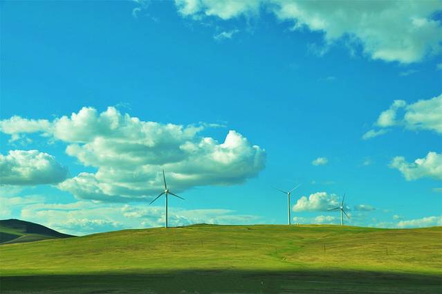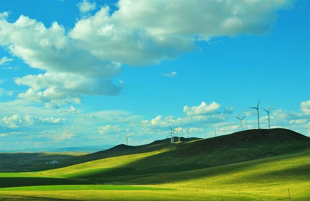 驶上去贝尔湖的公路,转过一个山头,我惊呼起来:哇,好多风车。