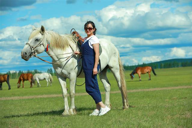 我的小白马是个佛系小宝贝,长的最好看却最懒散,永远都跟在别人屁股后面悠哉悠哉的走。轻轻的用马镫子蹬一下马肚,小白马应声小跑起来,草原的风在我耳边呼啸,吹乱了秀发,撩起了裙边。