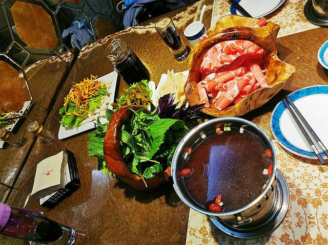 海拉尔菌香原健康主题火锅。不得不说,草原上的羊肉真心好吃,菌汤鲜美,手切鲜羊肉入口嫩滑,配上当地特制的蘸料,回味绵长。