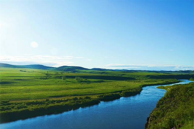莫日格勒河被老舍称为“天下第一 曲水 ”,发源于大兴安岭西麓,流经呼伦贝尔大草原汇入海拉尔河。李哥说带我们去看最美的莫日格勒河,于是,前一秒还驰骋在公路,下一秒就越过马路牙子拐向草原腹地,前方没有道路,没有路标,没有导航,手机甚至收不到信号,一切都是那么随性。
