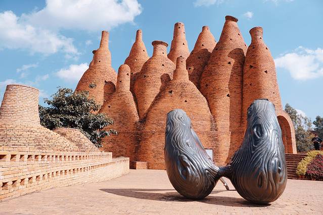 海刷云南攻略的时候,一张“酒瓶子”城堡的照片瞬间引起了我的注意。弥勒,一个听着既慈祥又异域的地名随后进入了我的视野。蓝天白云下,矗立着赤橙色形态奇异的建筑,这好似乌托邦一般的画面也太美了吧!可以说弥勒一开始是整个云南行我最期待的一站。