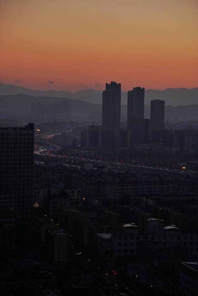 我们在昆明住的大本营就在火车站边上的一个高层里。今天要去的东川红土地路程遥远,所以很早就要起床准备出门拉。伴着闹铃声迷迷糊糊的睁开眼,拉开窗帘,哇偶~眼前的美景瞬间让我清醒不少。原来清晨的微光这么美的嘛!定睛一看,昆明这座城市也是这么忙碌,天还没大亮,远处的高架上已经是穿梭不息的景象了。